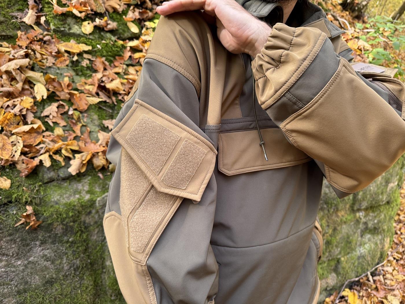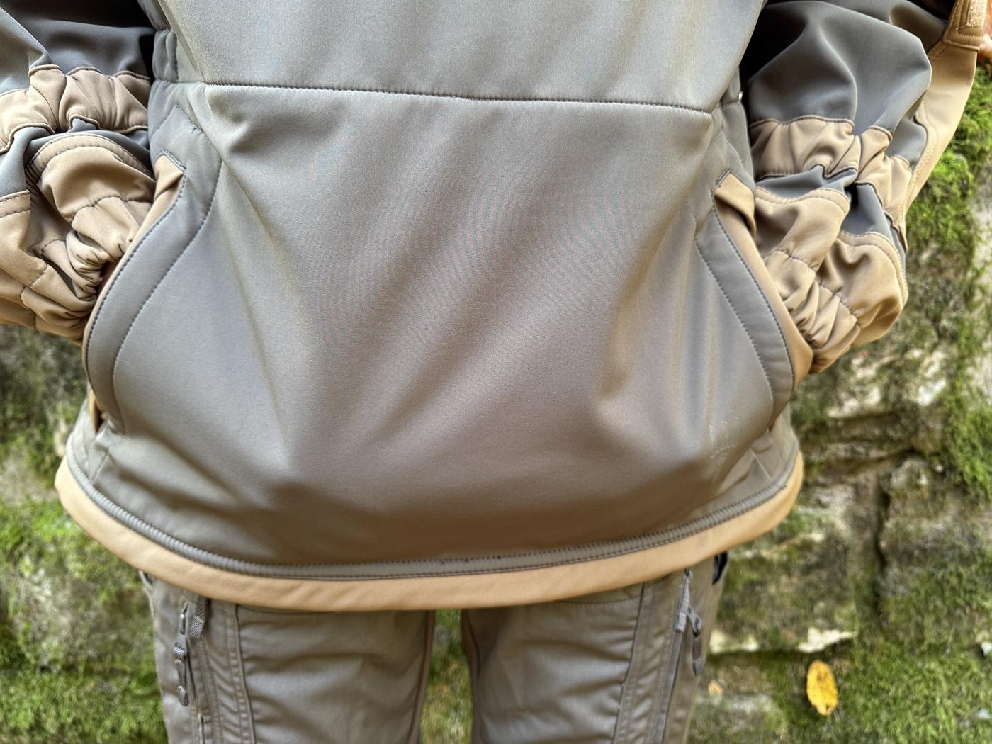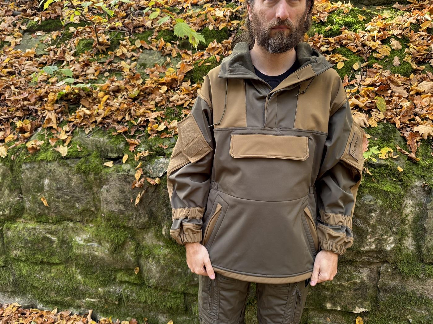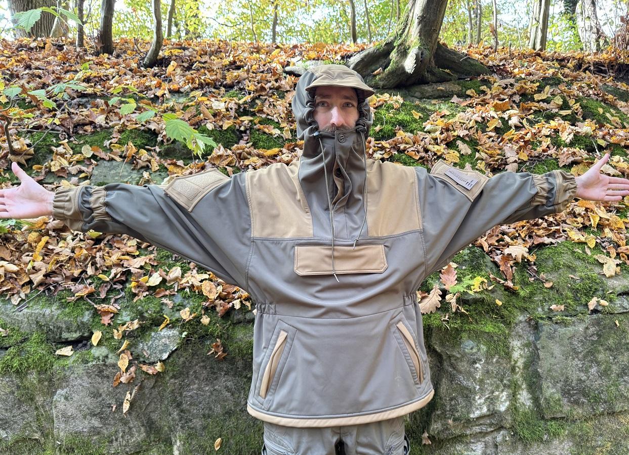The back is also kept very simple. The material is the same in both colors and not different as in the classic Gorka. The classic version consists of a robust linen fabric and an abrasion-resistant nylon fabric. The AKROG Anorak uses "only" softshell fabric, which is also very robust.
