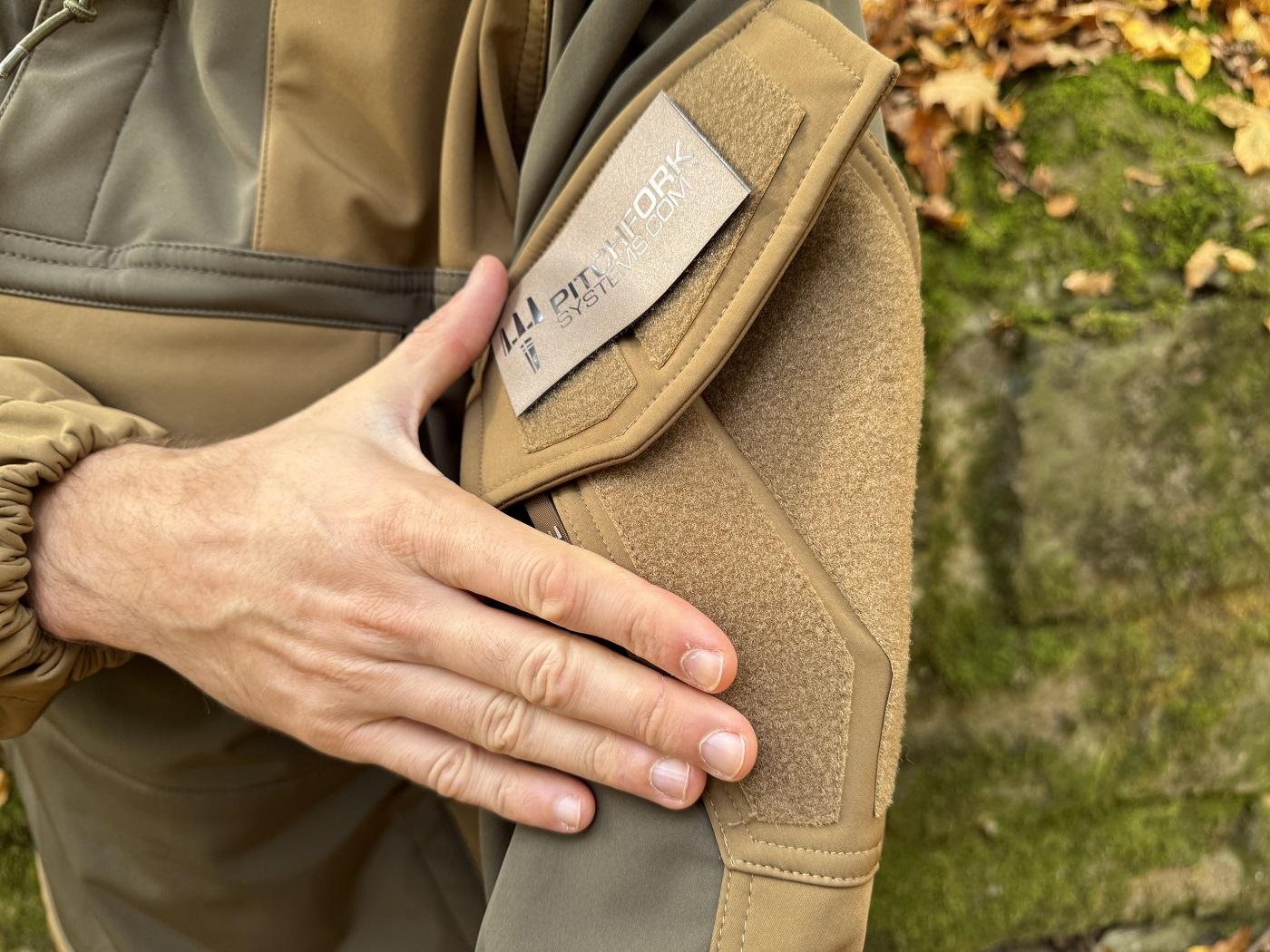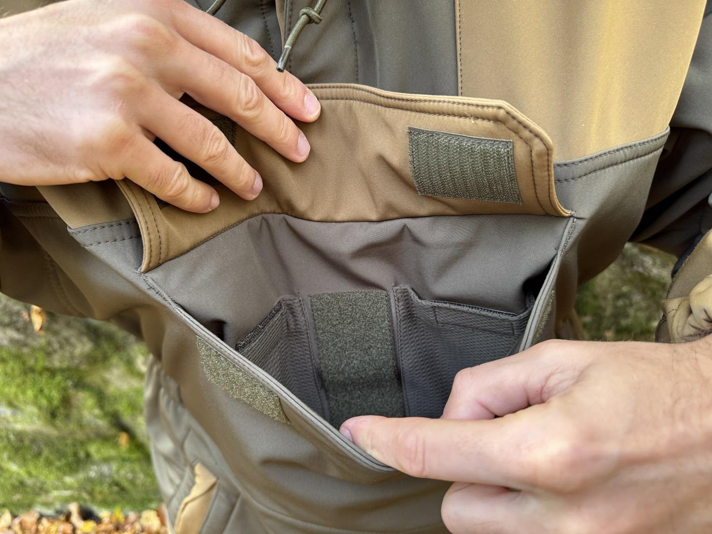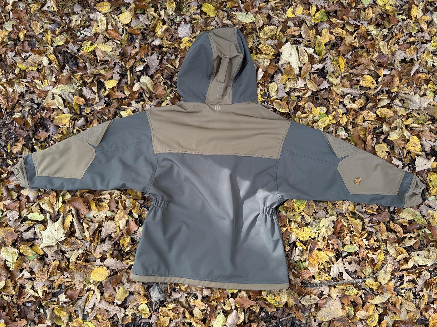 The back is also kept very simple. The material is the same in both colors and not different as in the classic Gorka. The classic version consists of a robust linen fabric and an abrasion-resistant nylon fabric. The AKROG Anorak uses "only" softshell fabric, which is also very robust.