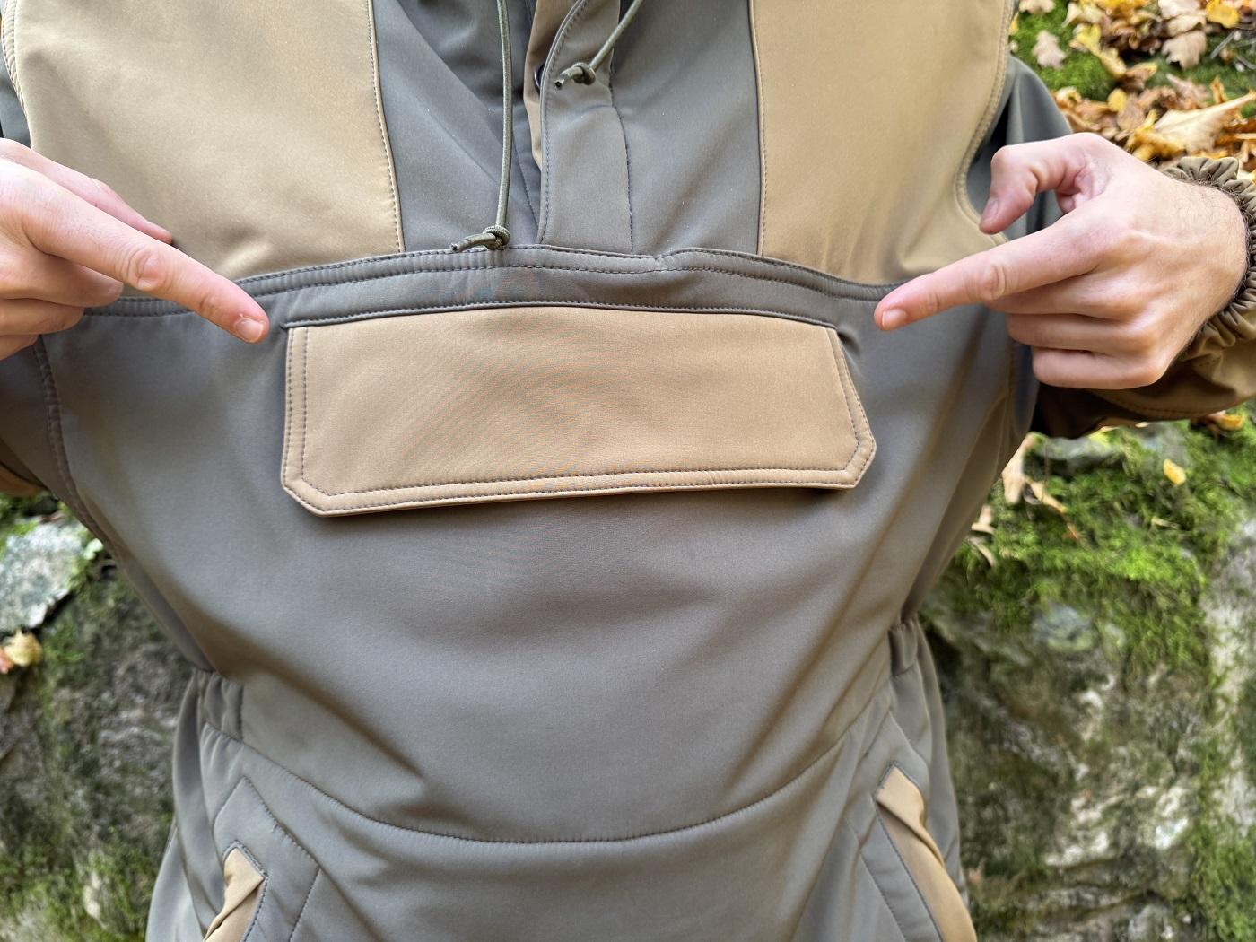 The fit is typically Gorka, so baggy. The AKROG Anorak provides you with a chest pocket and a front pocket to keep your hands warm.